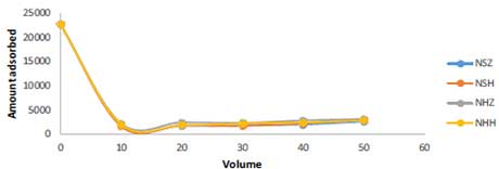 通過(guò)改變通過(guò)柱子并與活性炭接觸的廢水的量來(lái)實(shí)現(xiàn)廢水的體積對(duì)每種測(cè)試活性炭的吸附能力的影響。四種原材料做成的活性炭對(duì)微生物參數(shù)的吸附趨勢(shì)相似。吸附細(xì)菌和真菌的最有效的初始體積是10cm3。在初始體積為10cm 3時(shí),活性炭有效地吸附廢水中的高細(xì)菌和真菌負(fù)荷,此后吸附量幾乎保持恒定,如圖4和5所示。