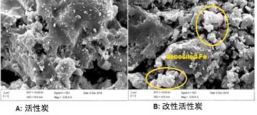 將40g氧化的活性炭與200ml FeCl 3混合。6H 2 O溶液含有2.5%的Fe 3+,并通過加入1N NaOH溶液將pH調節(jié)至12。Fe的浸漬在80℃下在150rpm旋轉的振蕩器上進行24小時。浸漬的活性炭在300℃下在N 2氣氛下煅燒3小時。然后用蒸餾水洗滌幾次,在110℃下干燥24小時。