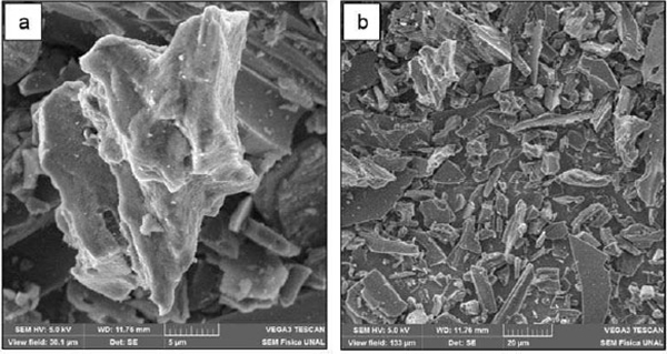 圖1:從渲染過程中產生的副產品獲得的活性炭顯微照片。(a)1000x。(b)100X。