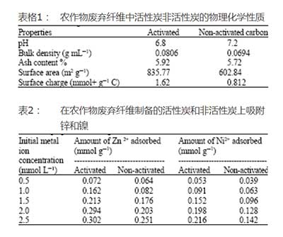 由農(nóng)作物纖維制備的活性炭已經(jīng)用于在初始金屬離子濃度范圍內(nèi)吸附Ni2+和Zn2+。從結(jié)果中,發(fā)現(xiàn)金屬離子的吸附容量為:Zn2+>Ni2+。這一結(jié)果表明,這種纖維是一種無商業(yè)價值的農(nóng)業(yè)副產(chǎn)品,可用于清除水性廢水中的金屬離子。因此,通過這一過程,用于常規(guī)污水處理的商業(yè)活性炭或其他化學(xué)品所花費的資金要少很多并且難呢過有效利用廢物。